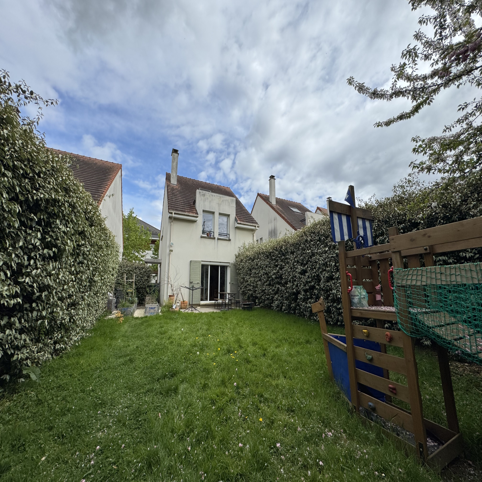 - Garage privé + appentis dans le jardin : stationnement sécurisé et abri supplémentaire pour outils/stockage.