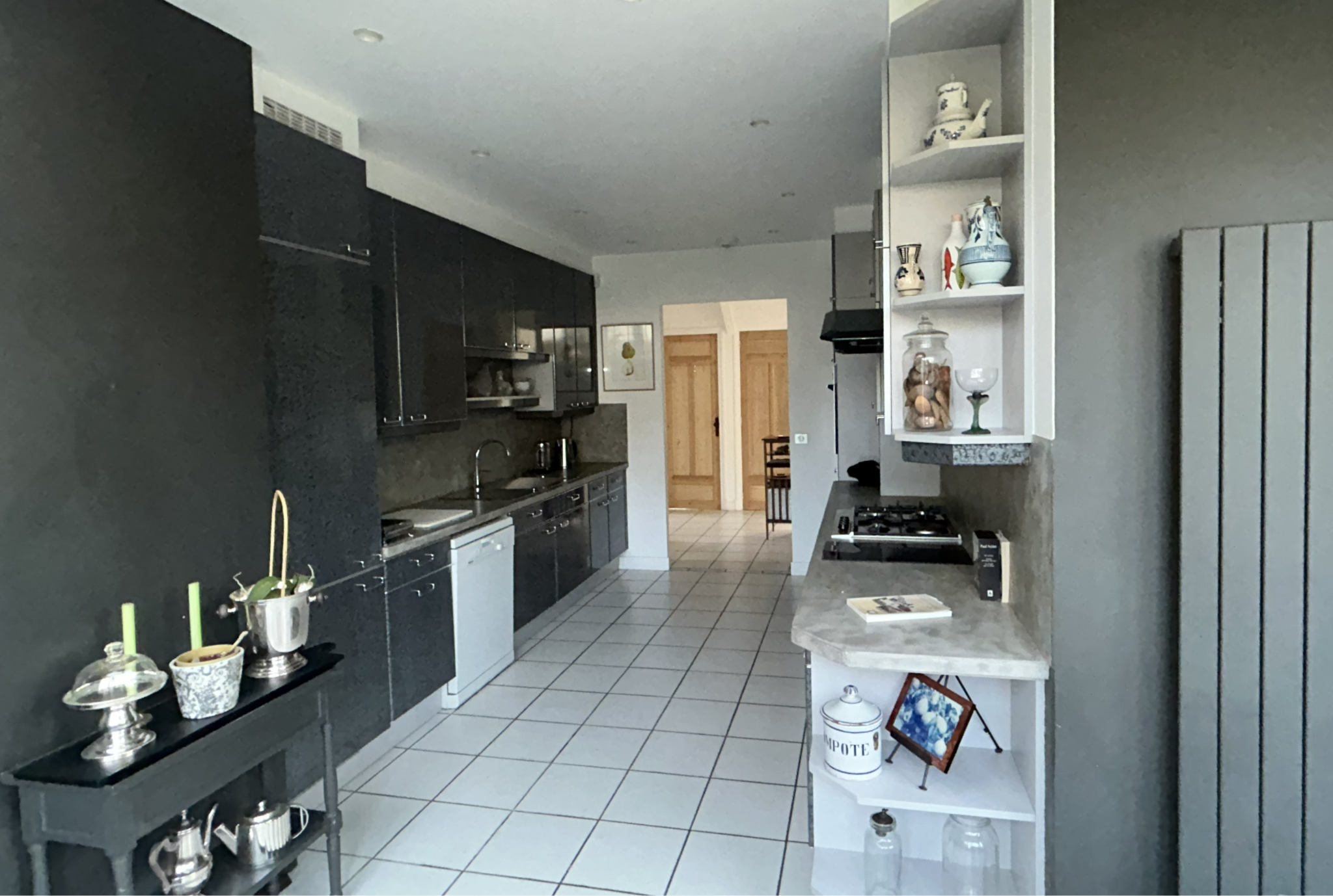 Elle dispose au rez-de-chaussée d'une cuisine aménagée/équipée et son office, un dégagement desservant un bureau, une chambre, une salle de bain, un wc séparé et d'une grande pièce à vivre baignée de lumière ouverte sur le jardin, agrémentée d'une cheminée à insert pour réchauffer vos soirées d'hiver.