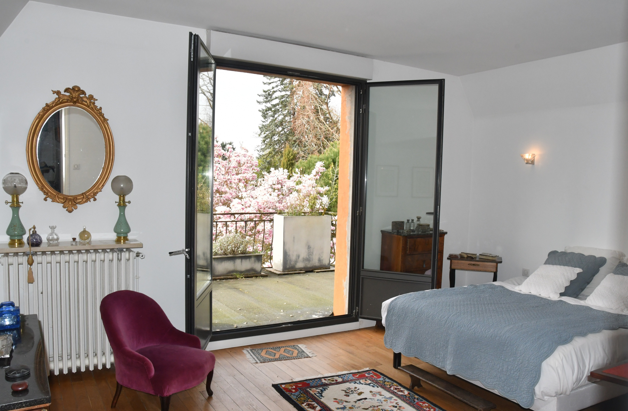 Belle demeure de charme rénovée avec soin de 197m² sur 1306m² de terrain paysagé au coeur du Village des Peintres, proche du Centre et de la Forêt, dans une rue au calme.
